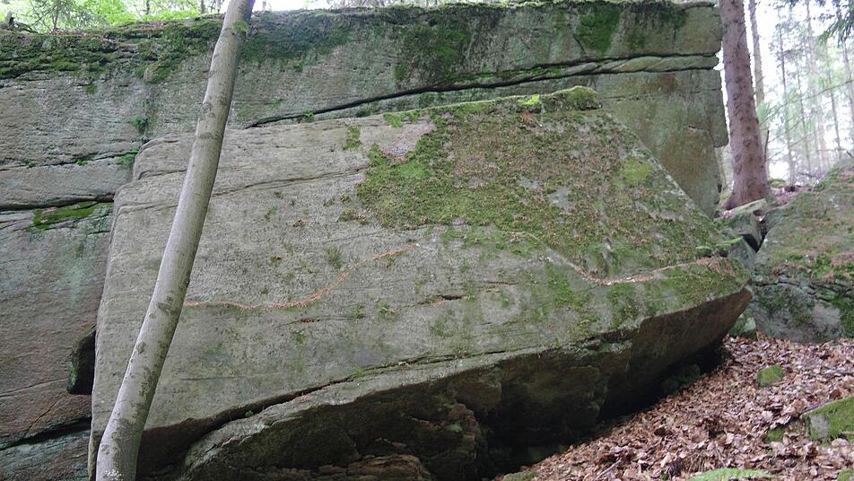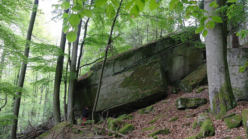 Nun waren sie der Witterung ausgesetzt, die ihren Teil zu der heutigen Beschaffenheit der Langen und Großen Steine beitrug. Geologisch "stecken wir in der ältesten Formation des Erdmittelalters" erklärt Ingo Queck. Weiter im Südwesten, in Bad Kissingen, ist mehr Muschelkalk zu finden, das Grabfeld wird von Keuper beherrscht.