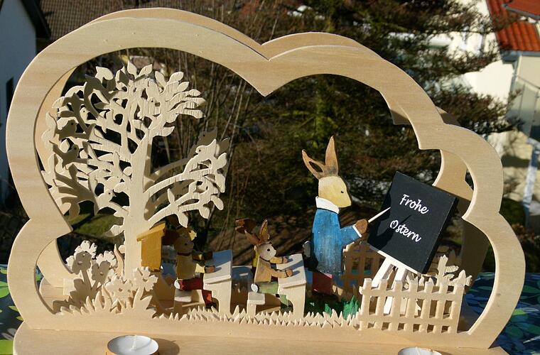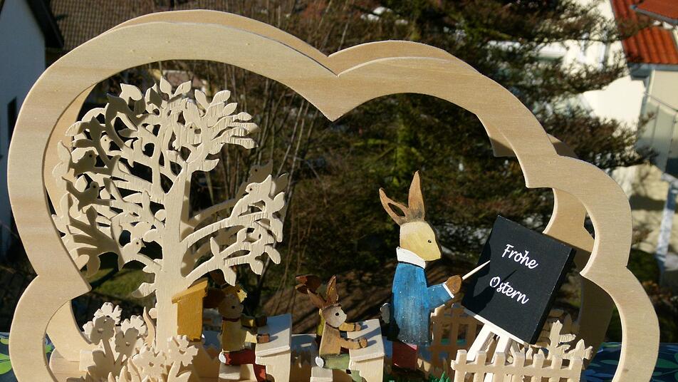 Bis Ostern sei es zwar noch einige Tage hin, in den Schaufenstern der Geschäfte und den Regalen der Einkaufsmärkte ist das Fest aber bereits allgegenwärtig. So habe er sich einfach inspirieren lassen. Das Bemalen der Figuren hatte diesmal der Riedenberger Werner Vieres übernommen.