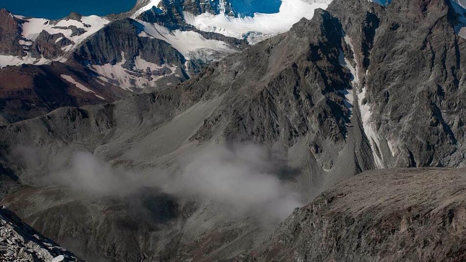 Tour abgebrochen Aufgrund der nicht ganz optimalen Wetterprognosen war das Biwak nur noch mit einem einheimischen Bergführer zusammen mit seinem Gast belegt. "Das Wetter brachte nichts Gutes, so dass in der Nacht 40 Zentimeter Neuschnee fielen." An eine Fortführung der Tour durch die 500 Meter hohe Südwand des Obergabelhorns zum Arbengrat war nicht mehr zu denken. "Rückzug war angesagt. Ein freier Abstieg über die Gletscherschliffplatten war nicht mehr möglich. Sämtliche Ketten und Stifte waren im Schnee verschwunden", blickt Koberstein zurück.