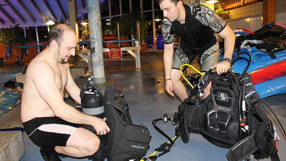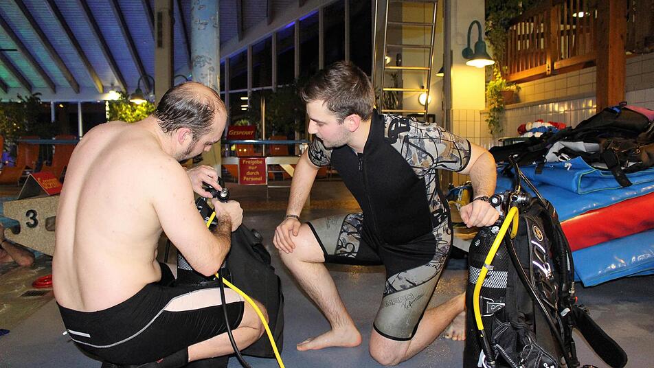 Doch dass es hier direkt vor seiner Haustüre einen Tauchclub gibt, erfuhr er erst vor wenigen Wochen. "Ich habe mich sofort für ein Schnuppertraining angemeldet", sagt Marc Handel begeistert und checkt mit seinem Tauchlehrer die Geräte durch, bevor er die 20 Kilogramm schwere Ausrüstung anzieht.