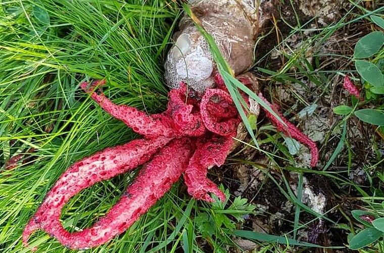 Seine krakenähnliche Form dürfte für seinen Namen verantwortlich sein. "Der Tintenfischpilz (Clathrus archeri oder auch Anthurus archeri) ist eine Pilzart aus der Gattung der Gitterlinge", heißt es auf der Internet-Plattform www.wikipedia.de (Gitterlinge sind übrigens den Stinkmorcheln verwandt).