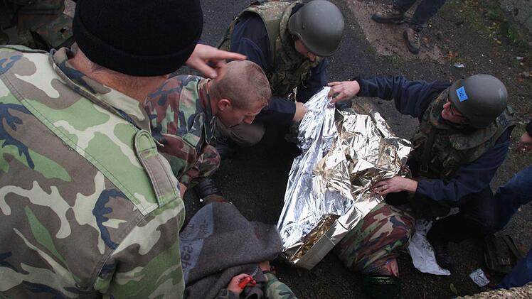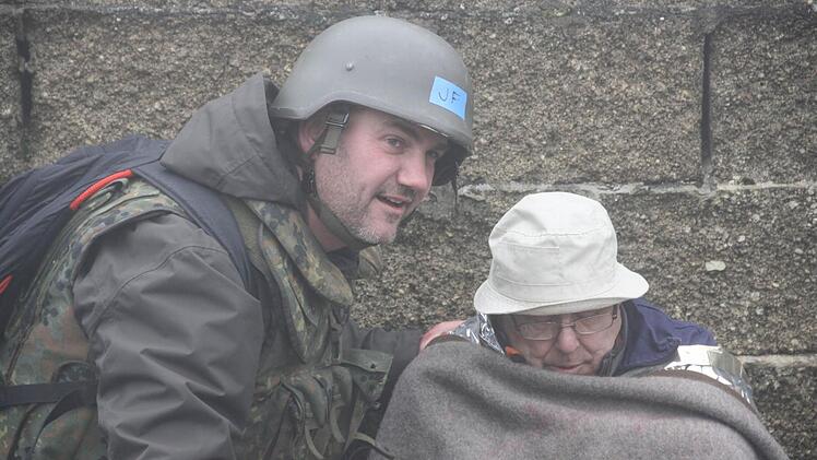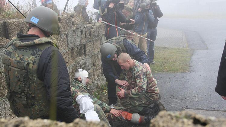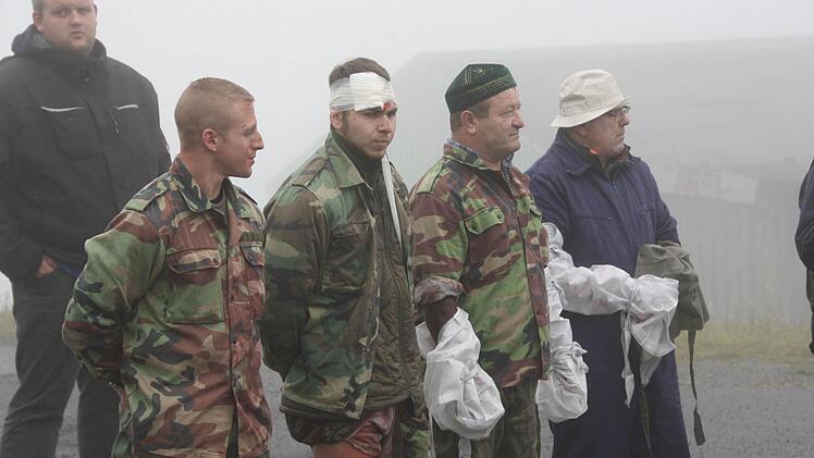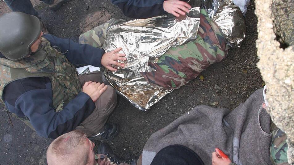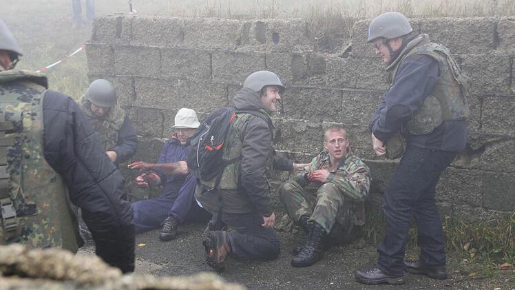 In vier Gruppen waren die Inspekteure eingeteilt, macht vier Einsätze am Tag für die Szenarien: Gut eine halbe Stunde Schreien und Verletzungen vortäuschen, dann etwa genau so lang Auswertung. "Die haben sich gut verhalten", lobt Maier die Inspekteure, und: ", Manchmal wissen die Teilnehmer gar nicht, was sie tun sollen."