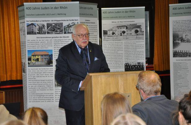 In seiner Rede anlässlich der Ausstellungseröffnung in Bad Brückenau zeigte Imhof die lange Geschichte der Juden auf. Bereits 300 nach Christus habe es Juden auf deutschem Boden gegeben. Lange Zeit lebten sie in friedlicher Koexistenz mit den Mitteleuropäern etwa bis zu der Zeit der Kreuzzüge. Danach erlebten sie immer wieder Phasen der Vertreibung und Ermordung. Durch die mit dem "Code Civil" von Napoleon Bonaparte eingeführten Grundrechte und der Frankfurter Nationalversammlung folgte eine Zeit der Emanzipation.