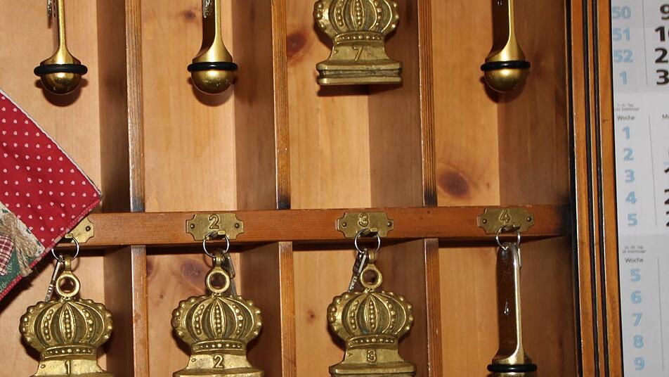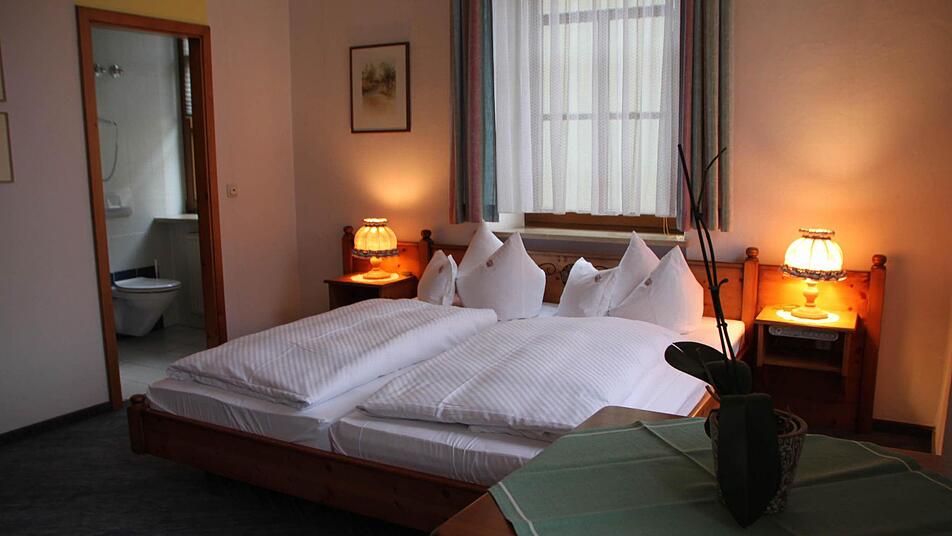 In der Weinstube hängen noch immer die alten Lampen aus Bocksbeuteln. "Wir mussten eigentlich nur alles sauber machen und umdekorieren", erzählt Schlößinger. Überall hängen sie noch, die alten Bilder von früher. "Die haben wir bewusst hängen lassen", sagt Wenig. Die junge Frau steigt Stufe um Stufe hinauf in die erste Etage. Eine Lisiecki-Zeichnung hängt im Treppenhaus. Und eine Rechnung aus dem Jahr 1934, nur ein paar Schritte weiter im Flur zu den Gästezimmern. Hier ist schon alles blitz und blank.