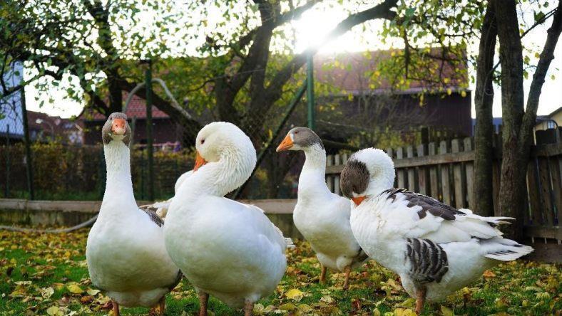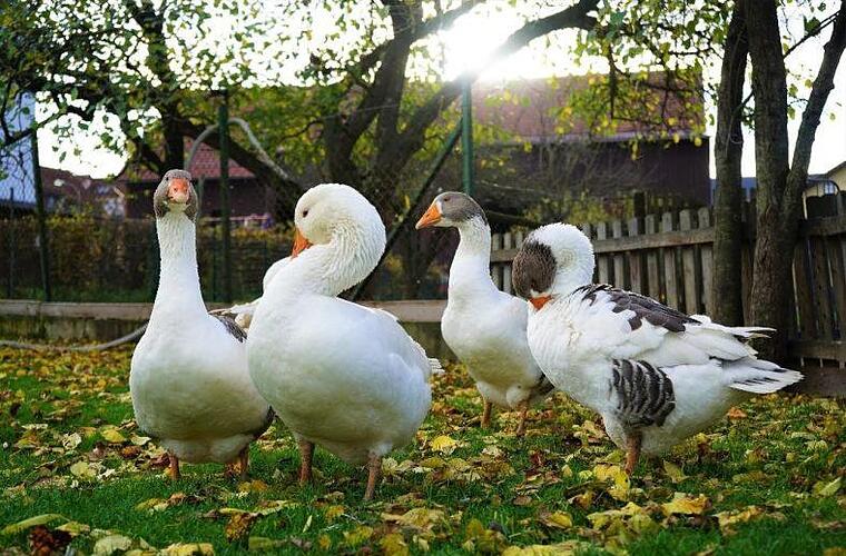 Herbert Bleuel erklärt, dass seine Gänse in Freilandhaltung leben und ausschließlich mit hofeigenem Getreide gefüttert werden. "Es setzt sich aus Weizen, Mais und Gerste zusammen. Auch ein Anteil Öl von der regionalen Ölmühle ist im Futter enthalten" verrät der Tierwirtschaftsmeister. Während in großen Mastbetrieben die Tiere meist nur zwölf Wochen leben, werden sie bei uns in der Rhön rund sechs Monate alt. "Durch das reine Getreidefutter, die ausreichende Bewegung im Freien und das langsame Wachstum haben unsere Tiere einen hohen Fleisch- und einen geringen Fettanteil", erklärt der Fachmann. "Der Bratverlust bei der Zubereitung ist dadurch sehr gering und der Fleischgeschmack besonders aromatisch", fügt er hinzu. "In diesem Jahr haben wir genügend Gänse, denn auch mit den "to go" Angeboten der Gastronomie fangen wir die üblichen Bestellmengen nicht auf", bedauert Bleuel.