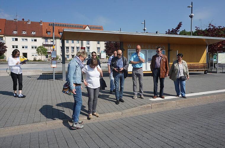 Checklisten, vom VdK erarbeitet, dienten als Grundlage. Schwerpunktmäßig ging es in Wildflecken um das Rathaus, den Rathausvorplatz und die Bushaltestelle mit Fußgängerquerung. Es wurden aber auch die Eingangssituationen der beiden Banken, von Post, Apotheke und Kindergarten sowie der Spielplatz in Augenschein genommen.