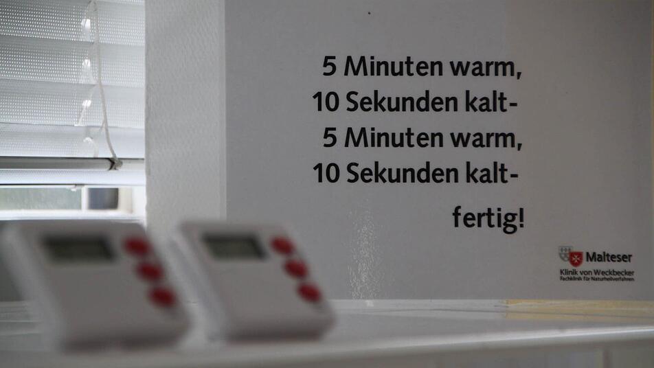 Doch wer kneippt, sollte ein paar Dinge beachten. "Nie kaltes Wasser auf einen kalten Körper geben! Das hat eine lähmende Wirkung", erklärt Ramona Simon. Im Allgemeinen haben die Bäder, die sie für die Patienten zubereitet, eine Temperatur von 37 oder 38 Grad Celsius. Das kalte Bad liegt etwa 20 Grad darunter. "Es geht darum, den Kreislauf anzuregen", sagt Simon. Gerade in Verbindung mit den Fastenkuren, für die die von Weckbecker Klinik bekannt ist, unterstütze das die Ausschwemmung von Giftstoffen aus dem Körper.