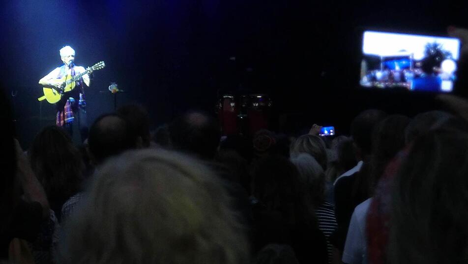 Selbst auf Deutsch gesungene Titel wie "Wenn unsere Brüder kommen" von Konstantin Wecker und "Sag' mir wo die Blumen sind", begeisterten das Publikum. Statt Wunderkerzen gab es zeitgemäß bei "The Boxer" und "Gracias a la vida" vielfaches Handyschwenken.