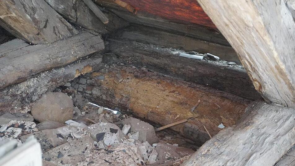 "Der komplette Dachstuhl war nicht mehr zu retten", bestätigte auch Bauleiter Christian Enders von der Kammerdiener Peegut Gruppe. "Nicht nur, dass das Gebälk zum größten Teil vermorscht war, es war an mehreren Stellen stark verschoben. Die sogenannte Mauerlatte, die auf der Außenmauer aufliegen sollte und zur Befestigung der Deckenbalken dient ist zum Teil bis zu 30 Zentimeter und mehr verrutscht. Da war schon Gefahr in Verzug. Ein richtig strenger Winter und womöglich wäre das ganze Dach runter gekommen", erklärte Enders.