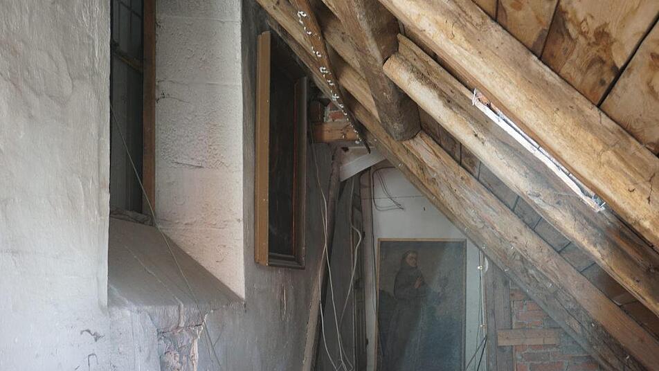 Ein Dachboden wird gerne als Abstellmöglichkeit für allerlei ungenutztes verwendet. So kam am Dachboden einiges zum Vorschein, das aus längst vergessenen Zeiten stammt. Bilder, die auf dem Dachboden aufgehängt wurden. Liturgische Gewänder, die nicht mehr getragen werden und Weihnachtsschmuck. "Wertvolles war nicht dabei", sagte Pater Georg Andlinger. Von wem die Bilder stammen konnte nicht festgestellt werden. Andlinger vermutet von Franziskanern, die sich künstlerisch betätigt haben. "Offenbar hatte man im Laufe der Jahrhunderte nicht den rechten Platz und sie auf den Dachboden gehängt."