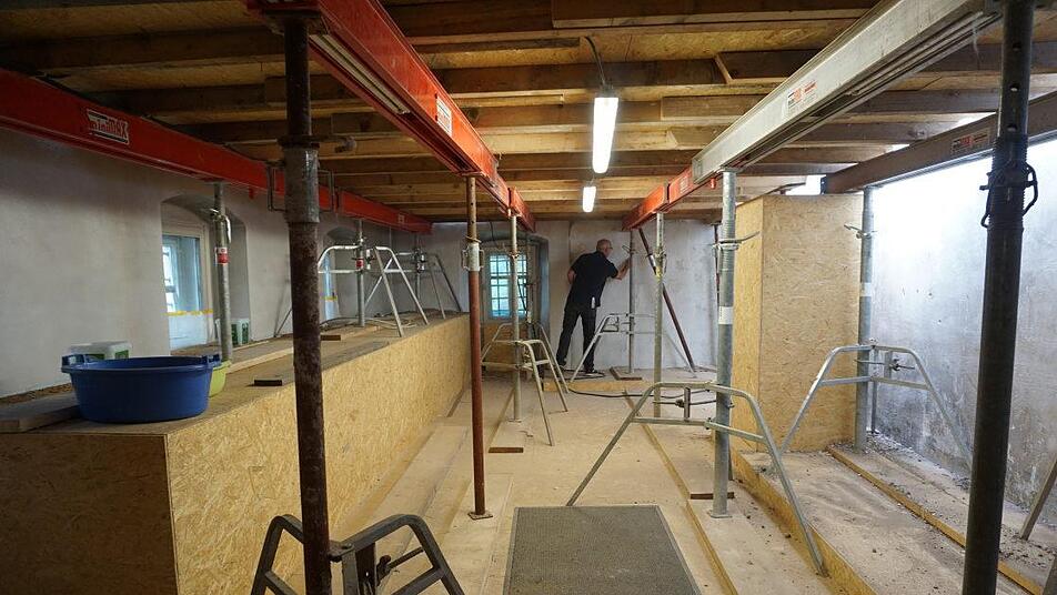 Die Zwischendecken zum Dachboden und dem oberen Spitzboden wurden entfernt und das Mauerwerk wird, wo es nötig ist, ausgebessert. Ein Zwischenboden werde künftig nicht mehr einzogen, die Sakristei werde mit Sichtgebälk versehen nach oben hin offen bleiben. "Allerdings nicht bis in die Spitze", erklärte Pater Georg Andlinger. Der Spitzboden werde weiterhin abgeteilt. "Die Sakristei wird ein ganze neues Aussehen bekommen, es wird ein anderes Raumgefühl sein", so Andlinger.