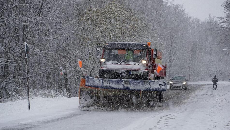 Die Info-Stelle im Bruder-Franz-Haus auf dem Kreuzberg hat gestern um 11 Uhr den ersten Schneefall gemeldet. Ab der Mittagszeit fielen die Flocken bis ins Saaletal. Deshalb musste der Winterdienst in mehreren Gemeinden ausrücken.