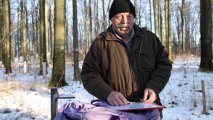 Seinen Wald aber kann er nicht lassen: Als 1998 die Bestandesmessestelle auf dem Kellerstein eingerichtet wird, meldet sich Rüttiger als Probennehmer. Seit 15 Jahren ist er immer dienstags für das Amt für Ernährung, Landwirtschaft und Forsten Bad Neustadt (AELF) unterwegs.