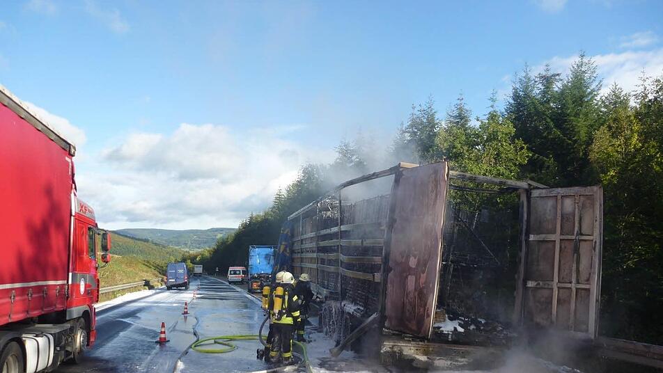 Einem Lkw brannte am Mittwoch auf der A7 komplett aus. Der Sachschaden beträgt rund 50 000 Euro.