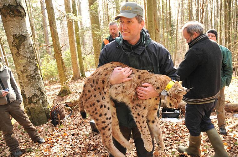 Luchse schon in der Rhön? Es ist jedoch davon auszugehen, dass diese Tiere auf Wanderzügen aus dem Harz in die Gegend vorgedrungen sind. Im Harz wurden im Jahr 2000 24 Luchse angesiedelt, die sich erfolgreich vermehren und ausbreiten.Dass einzelne Luchse zwischenzeitlich bis in die Rhön vorgedrungen sind, lässt auch der unbestätigte Verdacht des Risses eines Kalbes in einer Mutterkuhherde in Thüringen vermuten. Sowohl Heurich als auch Franz Müller, erfahrener Wildbiologe, halten den Luchs als Schadensverursacher in diesem Fall jedoch für unwahrscheinlich.