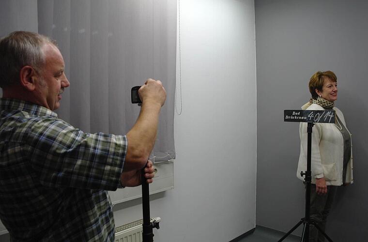 Bürgermeisterin Brigitte Meyerdierks (CSU) hatte zwar keinen "Dreck am Stecken", sehr wohl aber an den Händen, nachdem Polizeihauptkommissar Clemens Markert ihre Fingerabdrücke abgenommen hatte. Zur erkennungsdienstlichen Behandlung gehörten natürlich auch die Fotos, und somit war die Stadtchefin "polizeilich erfasst". Brigitte Meyerdierks bekam ihre Fingerabdrücke lediglich als Erinnerungsfoto mit, doch Fingerabdrücke von Verdächtigen und Straftätern werden noch eingescannt und in die Datenbank übertragen.