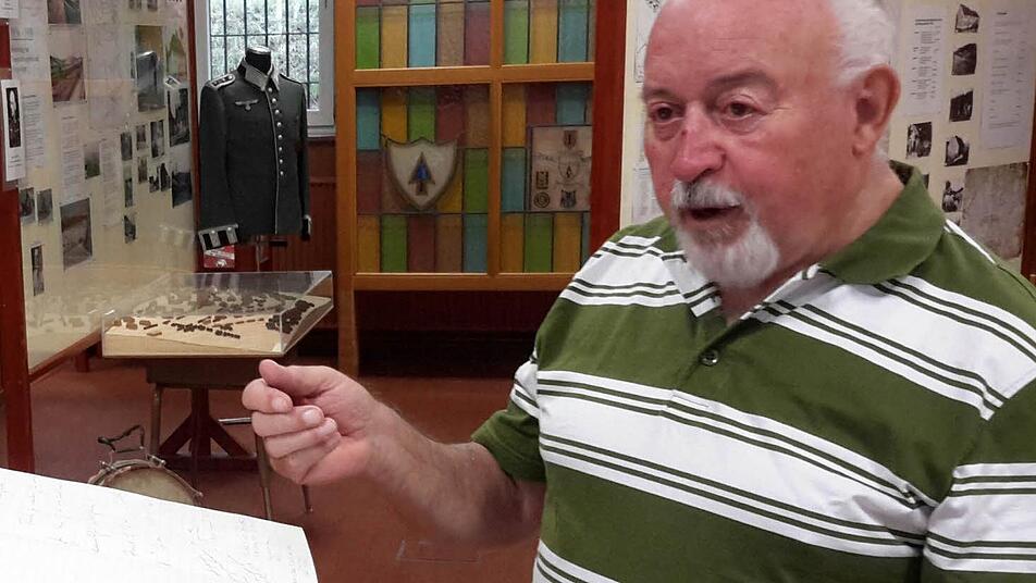"Fast wöchentlich werden mir neue Exponate zugeschickt", sagt Adolf Kreuzpaintner und öffnet vorsichtig einen gefütterten Briefumschlag. Zum Vorschein kommt ein weiteres gut erhaltenes Teil, das prima in seine militärhistorische Sammlung passt. Der heute 79-jährige ist nicht nur Initiator der Ausstellung, sondern auch Kurator, Archivar und Fremdenführer in einer Person. "Angefangen hat praktisch alles 1994 mit dem Abzug der US-Armee", erinnert sich der gebürtige Münchner, der schon immer an Geschichte interessiert war. Zu jener Zeit lebte er bereits seit 30 Jahren in Wildflecken und bekam so sein Wissen "immer aus erster Hand". Auch seine Erfahrungen als Zeitsoldat und später als Zivilangestellter der Bundeswehr kamen ihm beim Aufbau der Sammlung zugute.