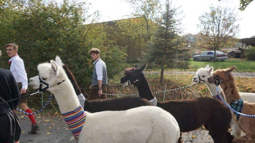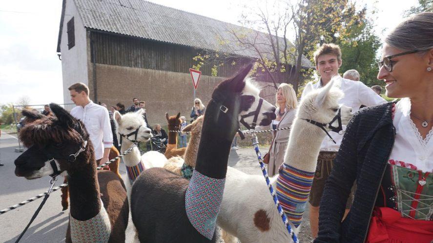 Der Weideabtrieb in Ginolfs ist zu einem Publikumsmagnet geworden. Jung und Alt möchte dabei sein, wenn Rinder, Schafe, Ziegen und Alpakas zu Tal getrieben werden. Ja auch Alpakas gibt es seit diesem Jahr in Ginolfs. Familie Janz hat die Tiere angeschafft und bietet für Touristen etwas andere Rhön-Erfahrungen mit Alpaka-Wanderungen an. Die Tiere wirken wie überdimensionale Kuscheltiere, mit ihrem lockigen Fell, den neugierigen und wachen Kulleraugen. "Oh sind die süß", war immer wieder zu hören. Auf ihren Halstüchern waren sogar die Namen der Tiere zu lesen und bereitwillig ließen sie sich streicheln. Sie schreckten auch nicht die Zuschauermengen, die mit Handy, Kameras und Filmausrüstungen angereist waren, um möglichst viele Bilder unmittelbar von den Tieren aufzunehmen.