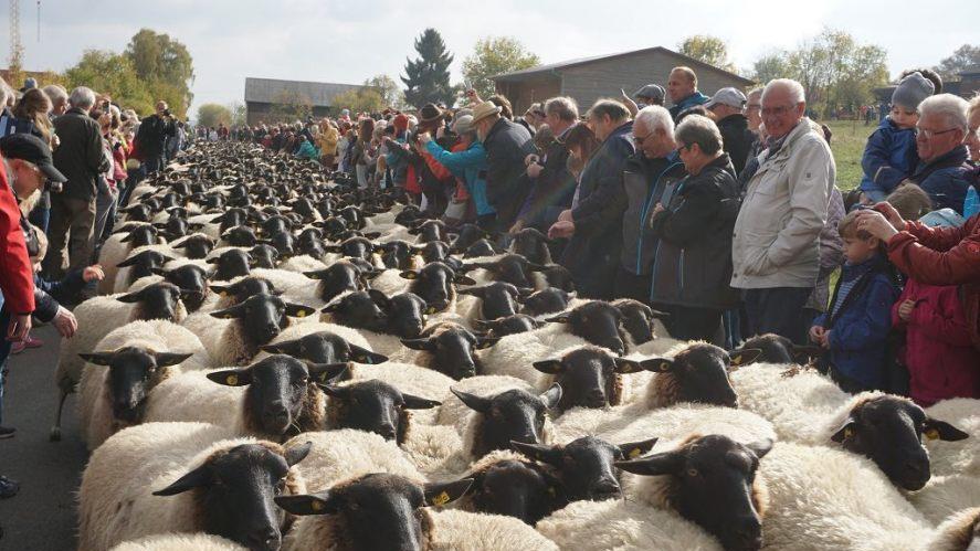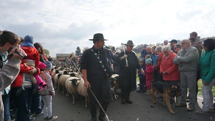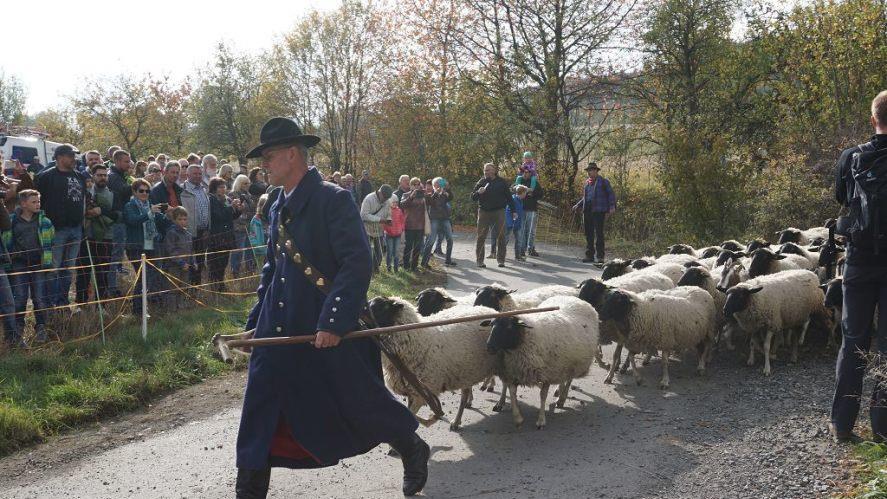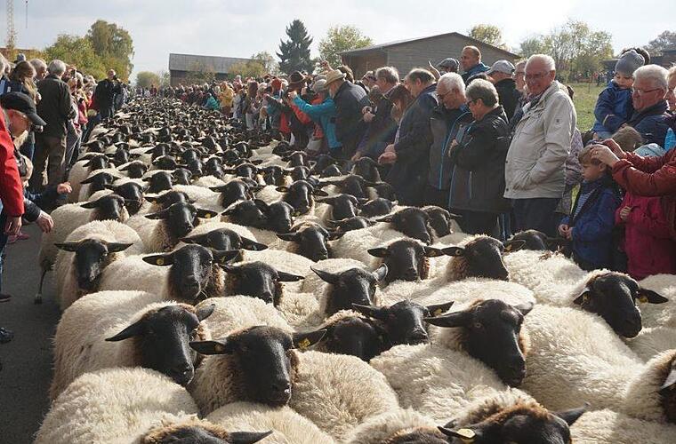 Ebenso problemlos waren die 900 Rhönschafe der Weidegemeinschaft mit Schäfer Julian Schulz und Viktor Schumacher unterwegs. Immer wieder ist es ein schöner Abblick, wenn die Tiere auf dem Ginolfser Berg erscheinen und wie ein wogendes Meer ins Tal ziehen. "Das muss man gesehen haben", befand ein Zuschauer.
