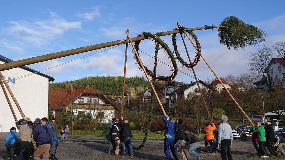 Kirmes ist in vielen Orten der Rhön bis heute Traditionssache: Auch die Kothener Kirmesgesellschaft rückt nicht etwa mit Motorsäge und Kran an, um einen Kirmesbaum zu fällen und im Ort wieder aufzurichten, sondern macht das so, wie seit Jahrhunderten. Trotzdem gibt es natürlich Neuerungen: Ein verhakter Baum wird auch einmal mit dem Traktor rausgezogen und seit drei Jahren feiert die Kirmesgesellschaft nicht mehr in der Gaststätte, sondern im Zelt.