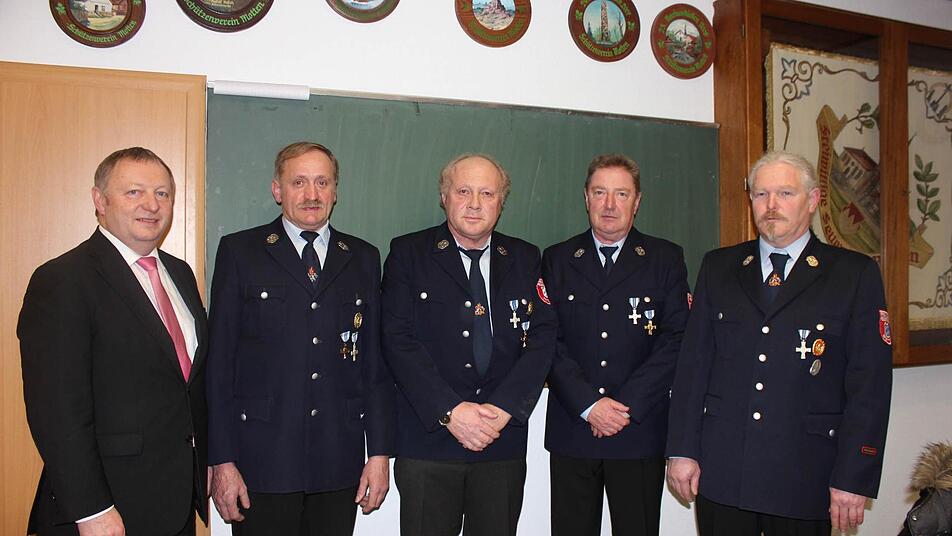 Sie wurden bei der Jahresversammlung der FFW Motten von Landrat Thomas Bold (CSU) dafür geehrt. Seit 25 Jahren sind Alexander Büchner und Tobias Herbert aktiv im Feuerwehrdienst. Josef Breitenbach, Klaus Kraft und Josef Möller aus Motten sowie der Speicherzer Helmut Winter sind seit 40 Jahren für die Feuerwehr im Einsatz.