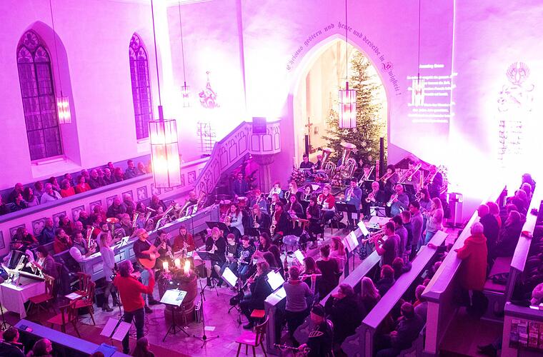Beim finalen "Amazing Grace" spielten nochmal alle beteiligten Musiker mit, bevor das Konzert mit einem gemeinsam gesungenen "Fröhliche Weihnacht überall" endete. Am Anschluss luden die Musiker ein, den Abend an der Glühweinbude am Geröder Rathaus ausklingen zu lassen.