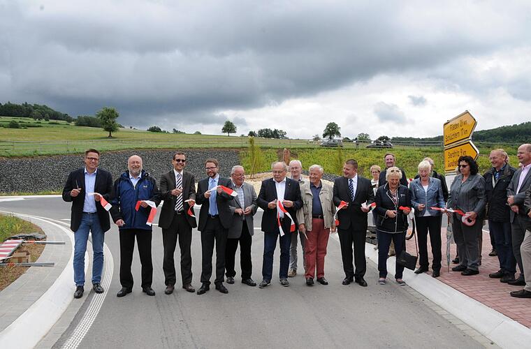 Stolz dankte ausführlich allen, die die Umsetzung der insgesamt 4,6 Millionen Euro teuren Ortsumgehung möglich gemacht hatten. Lob zollte er dabei den beteiligten Baufirmen, denn eigentlich sollte die neue Straße erst im Oktober eröffnet werden. "Glück auf und freie Fahrt", wünschte der Landrat.