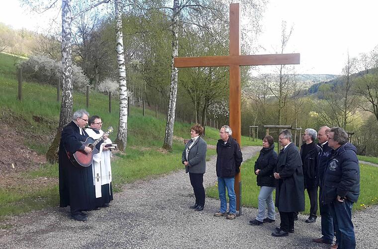 Der Geistliche sprach unter anderem davon, dass das Kreuz nicht nur das Leid absorbiere, sondern auch gleichzeitig ein Zeichen der Hoffnung sei. Nachdem Pfarrer Wahler das christliche Symbol mit Weihwasser gesegnet hatte, klang der andächtige Teil der Feier mit einem gemeinsamen Gebet aus.