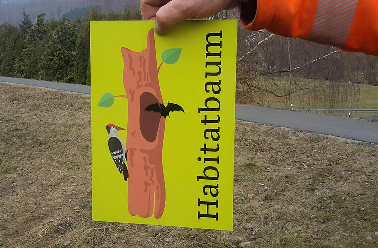 "Mit der aktuellem Maßnahme leisten wir einen weiteren wertvollen Beitrag zur Biodiversität", sagte Bad Brückenaus Bürgermeister Jochen Vogel (CSU) bei einem Ortstermin am Rhönexpress Bahn-Radweg. Denn pünktlich zum Tag des Artenschutzes erfolgte der Startschuss für die auffällige Kennzeichnung einiger sogenannter Habitatbäume, die sich entlang der Strecke befinden.