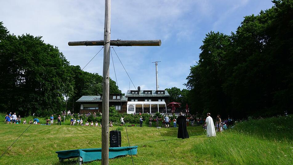 Leichter Wind und Sonnenschein. Die Hitze der Tage war am Neustädter Haus kaum zu spüren. Am Sonntag Vormittag luden Dekan Dr. Matthias Büttner und Pastoralreferent Stephan Tengler zum ökumenischen Berggottesdienst ein. Die Natur und der Weitblick in die Rhön ließ nahezu vergessen, dass es in Pandemie-Zeiten keineswegs selbstverständlich ist, miteinander Gottesdienst zu feiern und zu singen.
