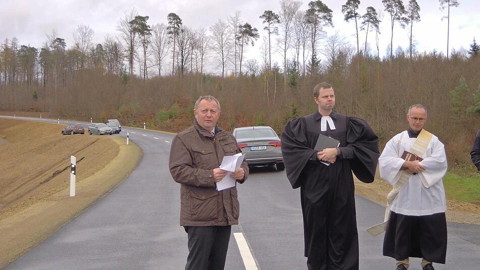 Er zeigte sich enttäuscht über das Ergebnis der Unfallkommission und das Fehlen der Schutzplanken. Die Rede von Landrat Bold wurde durch die Segnung der Straße durch die ortsansässigen Geistlichen, dem evangelischen Pfarrer Thomas Braun aus Weißenbach sowie dem katholischen Diakon Horst Conze aus Oberleichtersbach-Schondra, beschlossen: Möge diese Straße immer ein Zeichen für die gute Verbindung zwischen Protestanten und Katholiken sein.