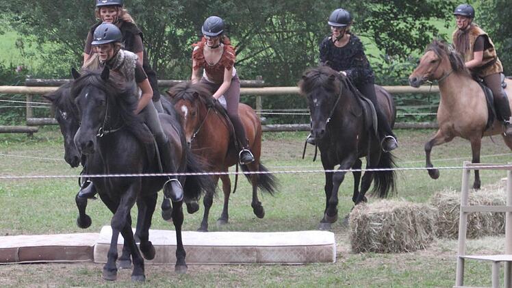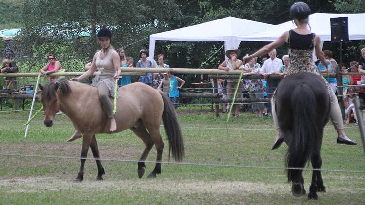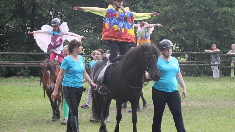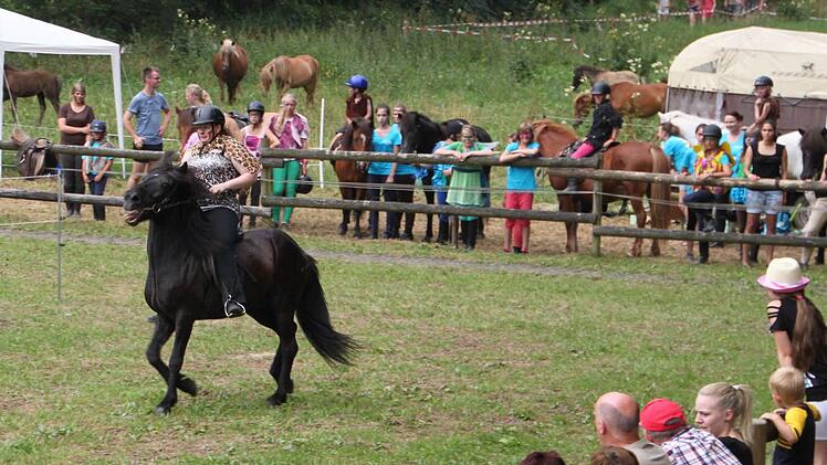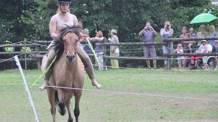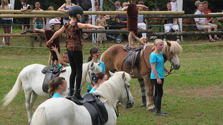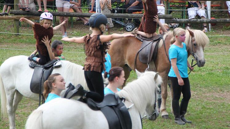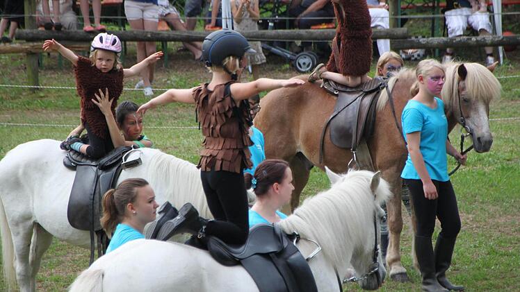 Zahlreiche Zuschauer waren zum Reiterfest nach Oberbach gekommen. Für das Musical "Tarzan zu Pferde" haben kleine und große Reiter acht Monate trainiert. Besonders zu Herzen ging den Besuchern das Schicksal von Jungtier Kraftúr.