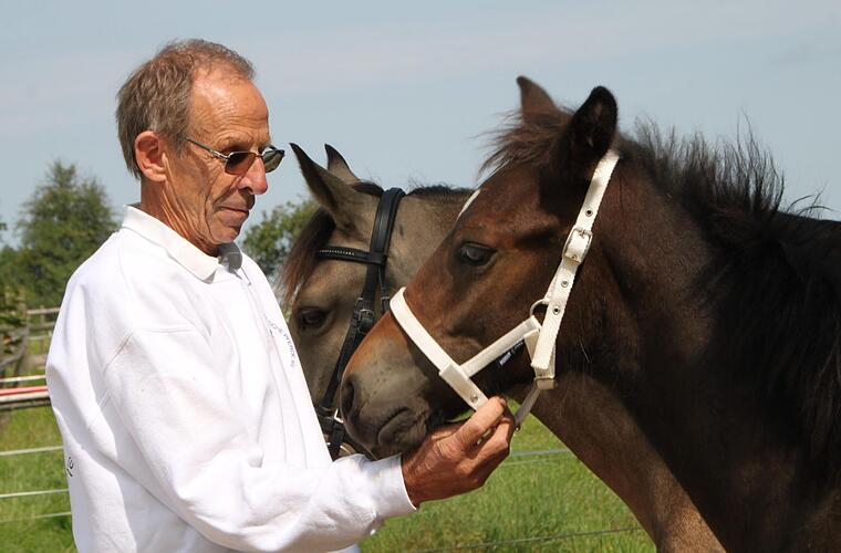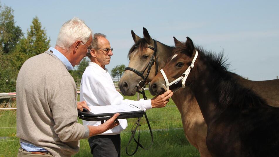Für "Flecks Lanthano" war es ein guter Tag. Er bekam die Note 7,9. Über seinem Stall wird bald das Schild mit der Auszeichnung hängen. Auch die beiden anderen Fohlen haben mit 7,4 und 7,3 ein gutes Ergebnis erzielt. "Alte Züchter sagen, man solle die Fohlen nach drei Stunden, drei Tagen, drei Monaten und drei Jahren anschauen", erzählt Peter Schmid, Gründungsmitglied und stellvertretender Vorsitzender des Bundesverbands. "Lanthano" hatte das nicht nötig. Das scheue Fohlen hat den Zuchtleiter auch mit sechs Monaten überzeugt.