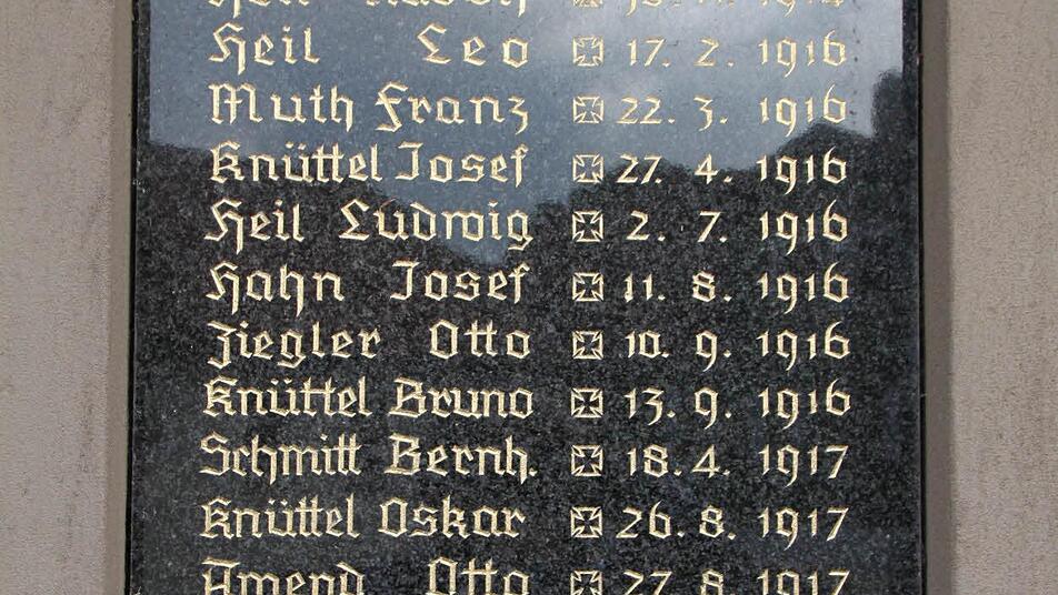 Gedenktafel erinnert an Gefallene Unterhalb der Oberleichtersbacher Kirche erinnert bis heute ein Denkmal an die Toten der beiden Kriege: 19 gefallene Oberleichtersbacher waren es allein im Ersten Weltkrieg. Der Soldaten- und Bürgerverein und der Kriegerverein Unterleichtersbach erinnern regelmäßig an die toten Kameraden. "Wir nehmen gerne an Friedenswallfahrten teil, aber auch Kameradschaft und Gemeinschaft sind uns wichtig.", sagt Gilbert Bösl, 2. Vorsitzender des Soldaten- und Bürgervereins. Die Tradition spiele für die Mitglieder eine wichtige Rolle. Der Krieg und seine schlimmen Folgen dürften auch in der heutigen Zeit nicht vergessen werden.