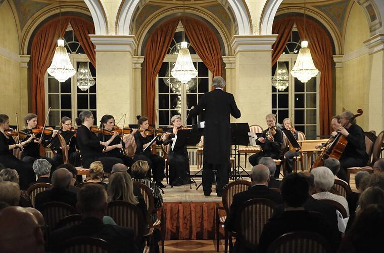 Schon der Einstieg mit Georg Philipp Telemanns "Ouvertüre (Suite) F-Dur" TWV 55:F11 (Alster-Ouvertüre) war ein wahrer Hörgenuss. In dieser Suite weist Telemann den mit Überschriften versehenen Sätzen Tanzformen zu und man begegnet Klangnachahmungen wie "Der Hamburger Glockenspiele", "Die konzertierenden Frösche (und) Krähen", welche tonmalerisch nachgezeichnet werden. Dabei entsteht ein wundervolles Wechselspiel der in dem jeweiligen Satz führenden Soloinstrumente. So befinden sich bei "Die konzertierenden Frösche (und) Krähen" Fagott, Oboe und Hörner im lustigen Wettstreit, während bei dem Satz "Der ruhende Pan" die Flöte mit einem herrlichen Solopart für die Landidylle sorgt. Das BKO konnte mit seiner filigranen Ausführung und den fabelhaften Wechselspielen sofort überzeugen.
