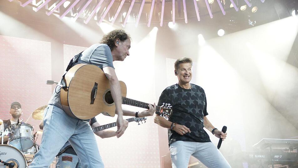 "Zwischen den Welten" heißt das Motto der Pur-Tour 2019, genauso wie das erste Album der Schwaben seit drei Jahren. Im Staatsbad Brückenau bedeutete das zunächst ein ständiges Wechseln zwischen Songs der neuen Platte und Hits der 1990er. Wobei die Klassiker wie das als Drittes gespielte "Ich lieb' dich (Egal wie das klingt)" eindeutig besser ankamen. Die Fans sangen Wort für Wort mit - egal, ob Ü40 oder ganz jung von Mutti und Papi ans Gesamtwerk herangeführt. Pur - das scheint Musik für Generationen zu sein; auch wenn zuletzt große Hits ausblieben.