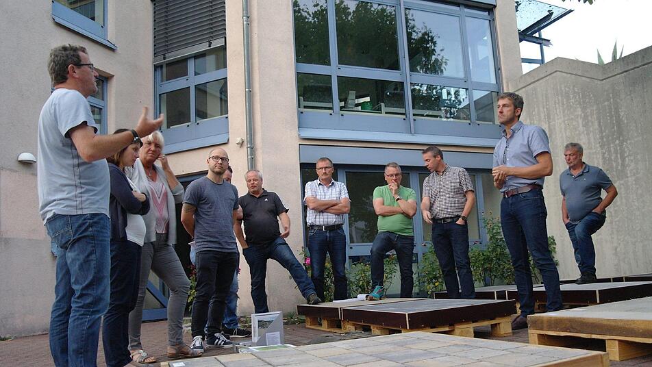 Die Mottener Gemeinderäte sahen sich Pflastersteine für das Kirchumfeld und Josefsheim an. Außerdem wurden die Arbeiten am Hochbehälter in Auftrag gegeben.