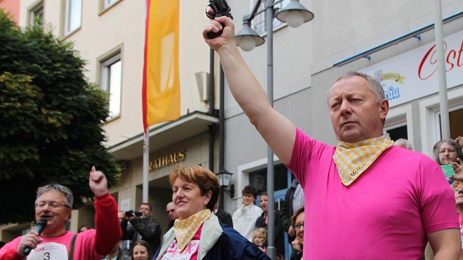 Punkt u 11 Uhr fiel der Startschuss für den diesjährigen Pinklauf in Bad Brückenau. Insgesamt 1074 Läuferinnen - etwas mehr als 1052 im Vorjahr - beteiligten sich an dem Charity-Lauf zugunsten des Vereins "Brustkrebs Deutschland". Vorsitzende Renate Haidinger gab den Startschuss für die erste Gruppe der Läufer ab. Anschließend folgten Jogger und Nordic Walker.