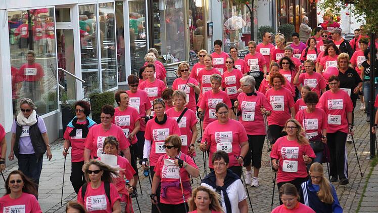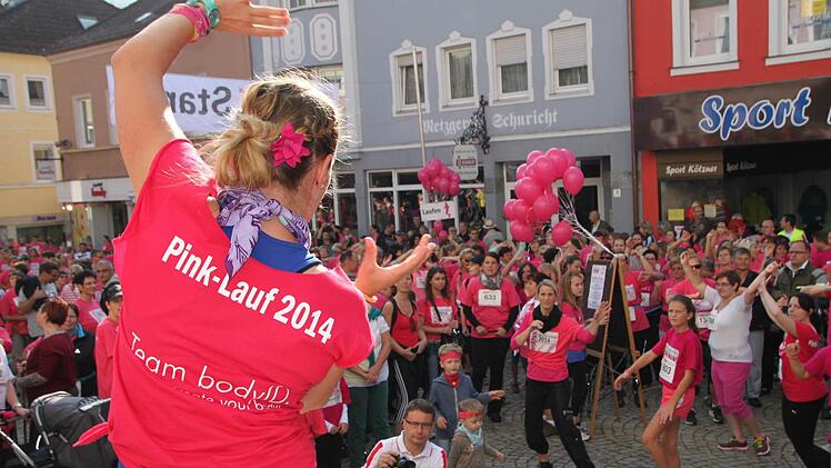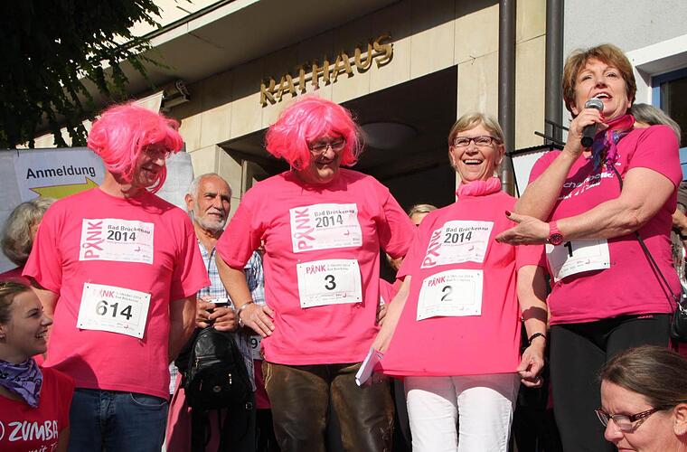 Der Startschuss für den Pinklauf 2014 ist gefallen. 845 Läuferinnen bevölkern die Straßen von Bad Brückenau. Auch eine Delegation aus Frankreich läuft mit.