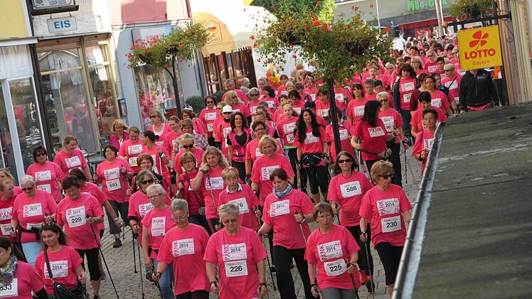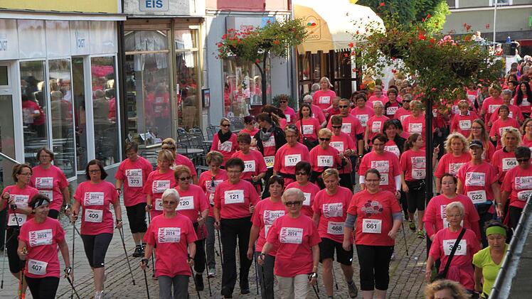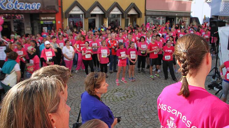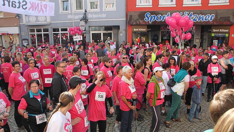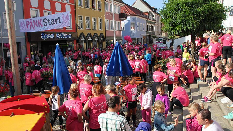 Strahlender Sonnenschein, blauer Himmel und die Straßen ganz in pink: 845 Läuferinnen - so viele wie noch nie - beteiligen sich am Pinklauf der Stadt Bad Brückenau. Der Charity-Lauf zugunsten der Brustkrebs-Vorsorge findet heuer zum vierten Mal statt. "Wir haben einen Pakt mit dem Wettergott geschlossen", sagt Uwe Schmidt vom Stadtmarketing, der die Aktion mit organisiert hat.