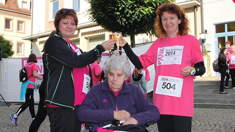 Das wollen auch Elke Drescher und Simone Mandel aus dem Raum Schweinfurt. Die beiden Frauen sind mit ihrer Mutter zum Pinklauf gekommen. Gertrud Döll sitzt im Rollstuhl und kann kaum sprechen. "Unsere Mutter hat selbst Brustkrebs gehabt", erklärt Drescher. Deshalb läuft die Familie heute mit.