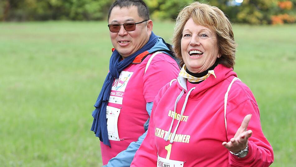 Am weitesten zum Pinklauf gereist war wohl Isabelle Vannier aus Ranville, dem Partnerort von Motten. Die Französin ist Vorsitzende des dortigen Partnerschaftskomitees. Birgit Winter, die aus Völkersleier stammt, kam immerhin aus Ludwigsburg zu Besuch.