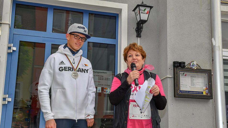 Es regnet nicht, und dann kommt auch noch die Sonne heraus. Der neunte Pinklauf in Bad Brückenau übertrifft wieder die Erwartungen. 1516 Teilnehmer - 124 mehr als im vergangenen Jahr - laufen die Strecke ins Staatsbad und zurück. Maximilian Jäger, der unlängst bei der Para-Radsport-WM zwei Silbermedaillen holte, gibt den ersten Startschuss ab. Landrat Thomas Bold (CSU) und Bezirksrätin Adelheid Zimmermann (FDP) geben ebenfalls Schüsse ab, denn beim Pinklauf starten die Läufer in drei Kategorien.
