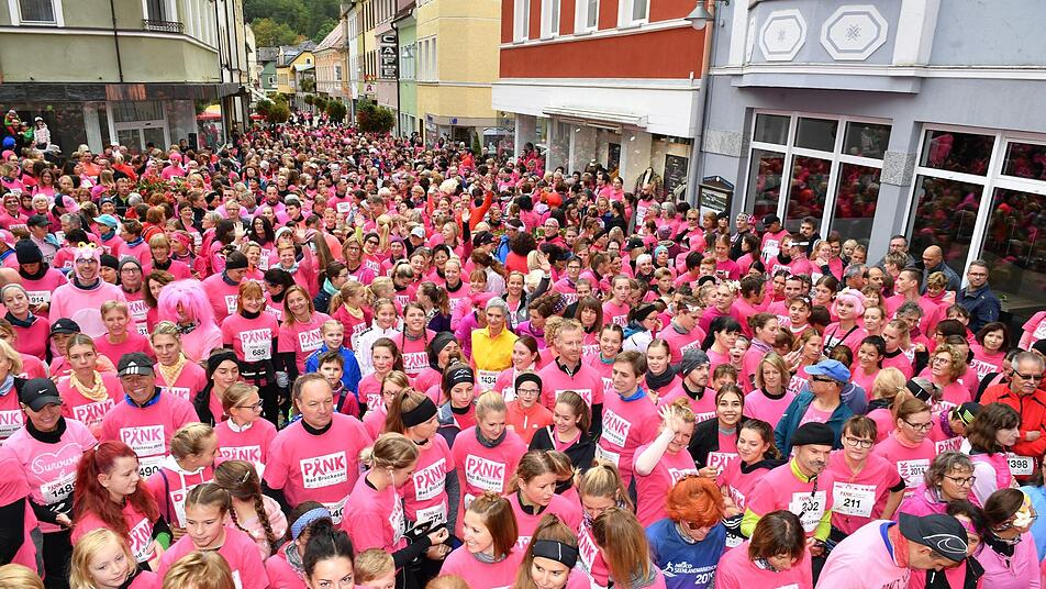 Insgesamt haben sich 102 Gruppen zum Pinklauf angemeldet. Das Rehazentrum Hammelburg stellt mit 60 Teilnehmern das größte Team. Es folgen kfd Thalau mit 43 und die Lebenshilfe Bad Kissingen mit 30 Läufern. "Diese grandiose Leistung aller Helfer, ohne die geht's nicht", sagt Karin Bauer, Leiterin der Tourist-Info, nach dem Lauf. "Da sind wir sehr dankbar." Der Erlös kommt dem Verein Brustkrebs Deutschland zugute.