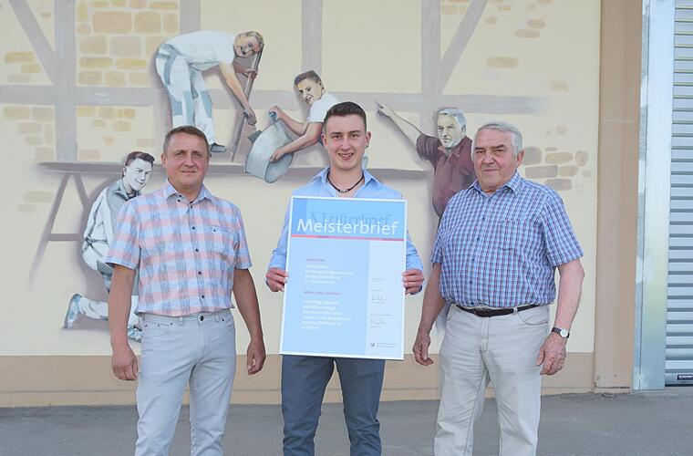 Jonas Fries (23) ist ein junger Mann, der weiß was er will: "Den Familienbetrieb übernehmen und weiterführen", sagt er. Um seinen Traum zu realisieren, hat er die Meisterprüfung im Handwerk Maler und Lackierer abgelegt und zwar mit Auszeichnung. Für seine Leistungen hat er den Meisterbrief der Bayerischen Staatsregierung erhalten, was Vater Jochen Fries und Großvater Egon Fries besonders freut.