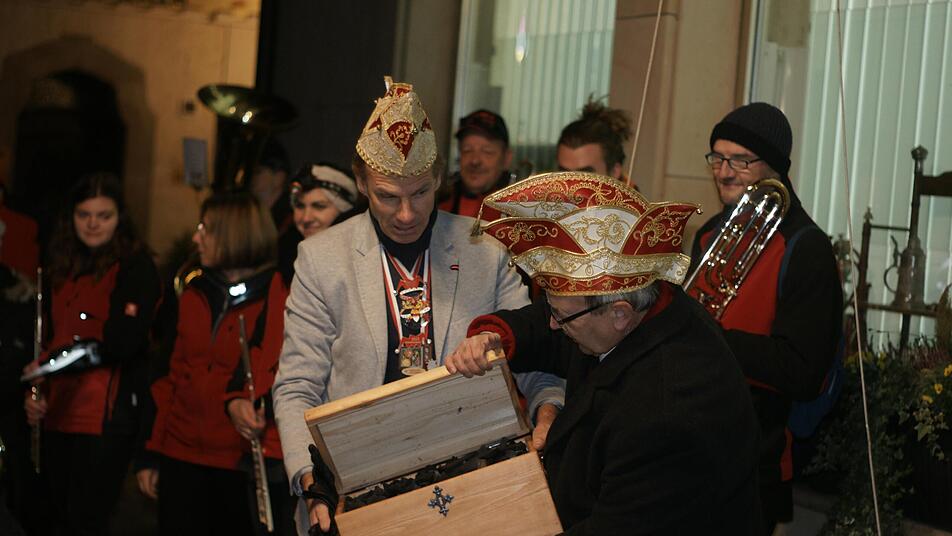 So stürmten die Narren um 19.43 Uhr ohne Gewalt hinein, fesselten Vogel, brachten ihn hinaus. Dumm nur, dass sie den Schlüssel in dessen Amtszimmer vergessen hatten. Nachdem der geholt war, übergab der Stadtchef sein Reich an die Karnevalisten. Und war ganz gespannt, was diese bis Aschermittwoch mit den Stadtgeschäften treiben werden.