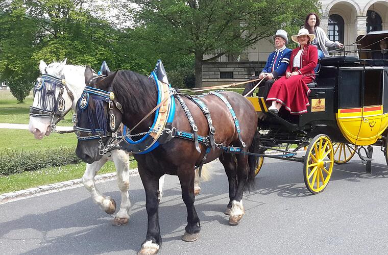 Mit zwei oder vier PS von Eckarts über das Staatsbad in die Stadt und zurück. Die Tour ist mit der Postkutsche möglich, die mittwochs die Runde fährt.