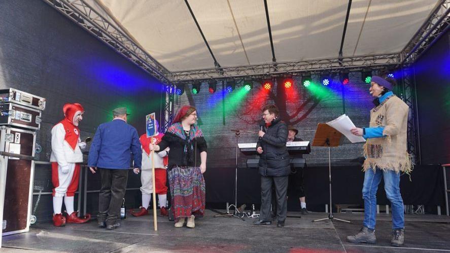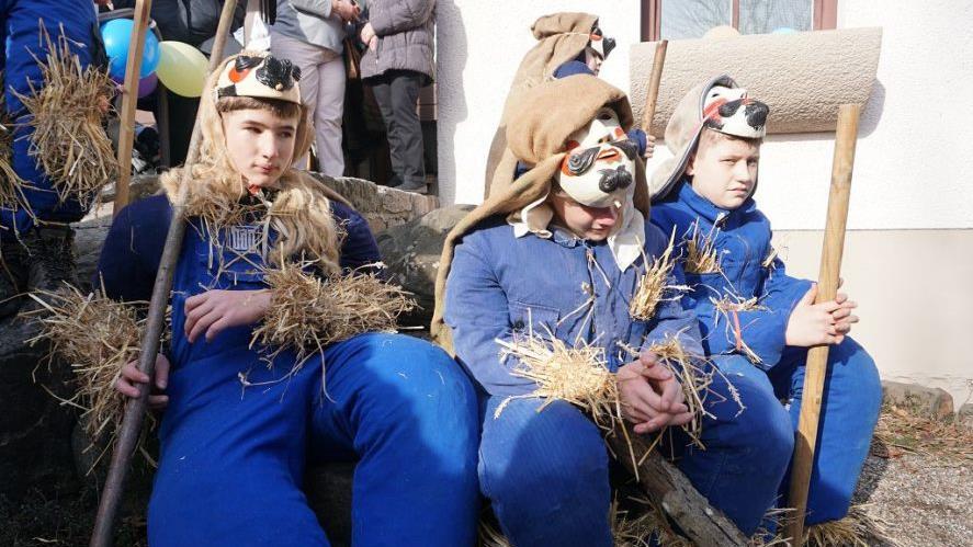 Neben den einheimischen Trachten gab es auch tolle Gastgruppen zu bestaunen, wie die "Obersinner Brönnbarchfratze" oder die "Rienigger Uwerzuuch". Aus Mellrichstadt war die MKG mit ihrem amtierenden Prinzenpaar nach Oberelsbach gekommen, sind sie doch Kooperationspartner der Fastnachtsakademie Franken und damit auch Partner in Sachen Fasenacht der Marktgemeinde Oberelsbach. Für Stimmung sorgten auch die drei Kommentatoren, die Ginolfser Musik- und Heimatvereinsvorsitzende Stefanie Schrenk und der Ginolfser Oberfaschingsnarr Harald Omert sowie das Fosenöchter-Multitalent Katharina "Käthe" Kaufmann. Klar, dass sie sich den einen oder anderen Seitenhieb auf die Nachbarn nicht verkneifen konnten. Das Publikum mochte die lockeren Sprüche und ließ sich gerne zum schunkeln und tanzen animieren. Wer sich an diesem Nachmittag für tiefere Informationen über die Masken begeistern konnte, der hatte die Möglichkeit den Fachvorträgen von Daniela Sendner (Leiterin des Deutschen Fastnachtsmuseums Kitzingen) und Eva-Maria König (Leiterin des Rhönmuseums Fladungen) zu lauschen.