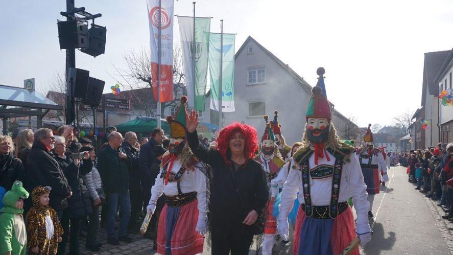 Der Festzug der Rhöner Maskenfastnacht war ein besonderes Erlebnis sowohl für die Teilnehmer, als auch die Besucher. Wie viele bei dem strahlenden Sonnenschein wirklich nach Oberelsbach gekommen waren, das konnte auch die Feuerwehr, die die Verkehr- und Parkregelung übernahm, nur erahnen. "Tausende", fassten sie schließlich zusammen. Schon lange vor dem offiziellen Startschuss war jedenfalls die Festzugsmeile dicht umlagert. Denn es galt ja nicht nur einen Blick auf die bizarren Masken und Kostüme zu erhaschen, sondern auch selbst das beste Bild zu schießen. Die Menschen feierten eine große Faschingsparty, und Bürgermeisterin Birgit Erb strahlte mit ihren Gästen um die Wette. "Uns geht es um den Erhalt unserer Tradition. Es freut mich riesig, dass die Einheimischen so stark mitmachen." Sie selbst allerdings war nicht kostümiert. Bei der ersten Rhöner Maskenfastnacht war sie noch als Weisbacher Jüde verkleidet gewesen. "Vielleicht wieder einmal", schmunzelt sie und ließ sich von einem der Jüde gerne zu einem Tänzchen mitreißen.