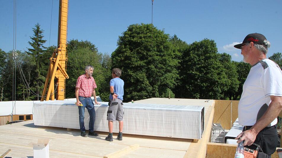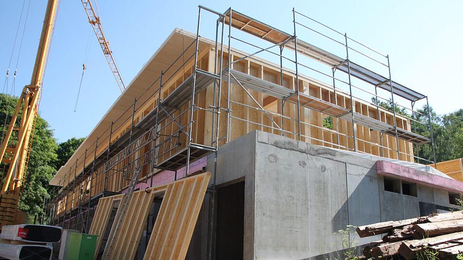 Am Montag haben sie angefangen, Mittwoch soll das neue Berghaus schon stehen. "Wenn wir das Dach drauf haben, ist alles dicht", sagt Hermann Reugels vom gleichnamigen Zimmereibetrieb in den Haßbergen. Seine Firma hat die Fertigteile aus Holz passgenau vorbereitet. Sie vor Ort zusammenzusetzen, dauert nur wenige Tage. Der für Donnerstag angekündigte Wetterumschwung kann der Baustelle dann also nicht mehr schaden.